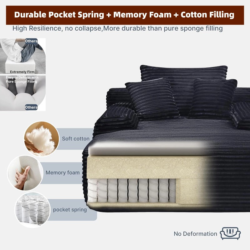 Built with pocket springs and high-density foam for exceptional support and durability. Supports up to 400 lbs with strong resilienceโmaintains shape even after compression and transport. The cushioning conforms to your body's curves and relieves pressure points for all-day comfort.