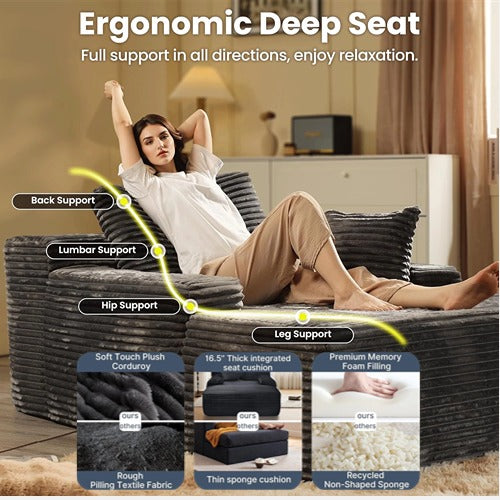Durable Design:ย Built to support up to 400 lbs, this chaise lounge combines style with reliability for everyday use.Exceptional Comfort:ย Featuring a 6-inch thick high-density foam cushion, it cradles your body while relieving the stresses of the day.